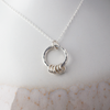 The central textured circle represents unity and wholeness, while the five delicate rings symbolise milestones—whether anniversaries, children, or cherished moments that make your story unique.