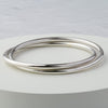 Two interlocking handmade chunky silver bangles, each made from solid 4mm round profile silver wire for an elegant but heavier look. Handmade in sterling silver and hallmarked.