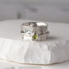 Made from solid sterling silver, the base ring measures approximately 12mm and has a hammered texture for added style and sparkle. The outer spinning ring has a beautiful cabochon gemstone that spins independently around it.