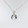 This Pebble charm pendant is set with a brilliant cut sky blue topaz gemstone and is suspended on your choice of 16 or 18 inch sterling silver trace link necklace. The gemstone is flush-set set with an open back to let in the light and show off its beautiful colour.